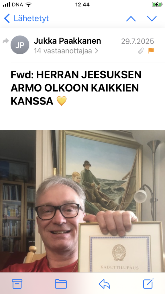 Tälle verkkosivulle olen nostanut HERRAN JEESUKSEN tahdosta 1.7.2025 lähimmäisille lähellä ja kaukana jakamani sähköpostin Jumalan Sanan opetuksesta hengellisessä Kristuksen Ruumiissa ajassa uskollisesti ja kuuliaisesti päivän ja hetken kerrallaan uudestisyntyneessä hengessäni elävää Raamatun Jumalaa HERRAA JEESUSTA palvellessani ja tehdystä hengellisestä Jumalan hengellisen seurakunnan palvelutyöstä opetukseksi, esimerkiksi ja rohkaisuksi menneiltä vuosilta palvellessani Herraa elämälläni todistuksen elävän Raamatun Jumalan tahdosta lähimmäisilleni antaen. Saat jakaa verkossa jaetun todistuksen edelleen kenelle vain tahdot. Valoa ja iloa.