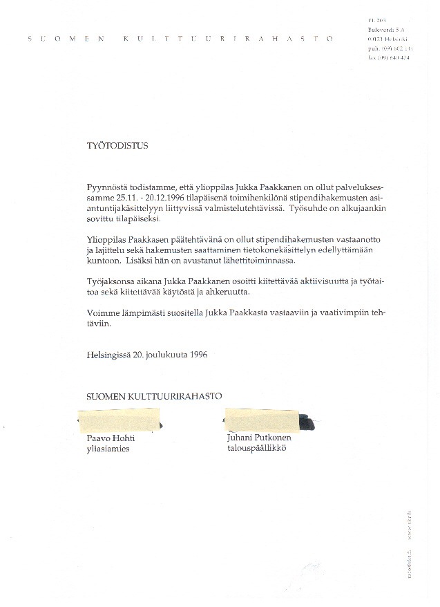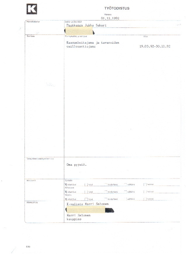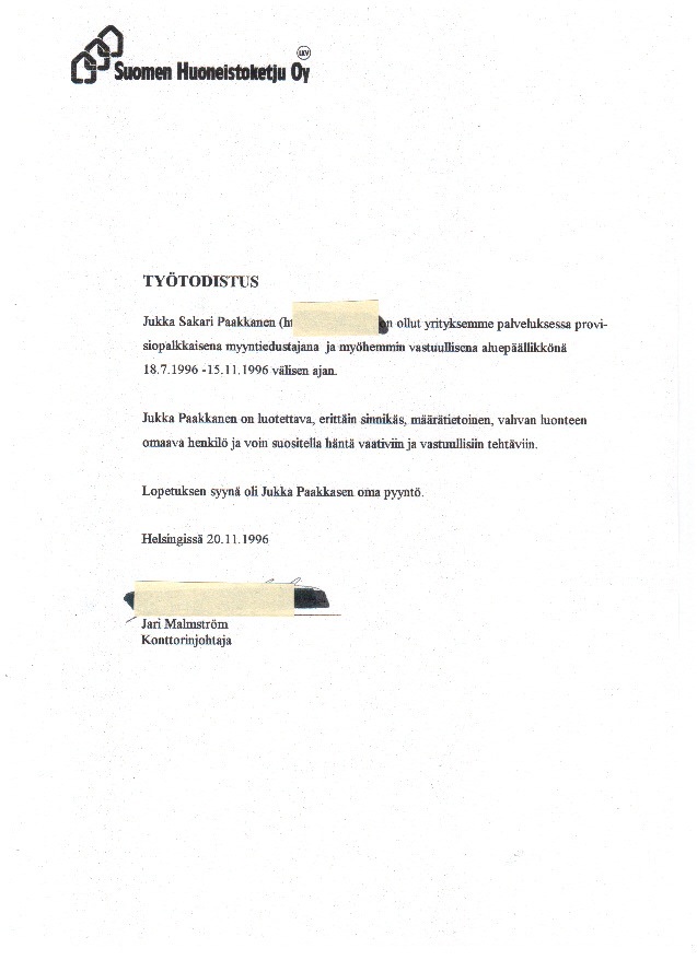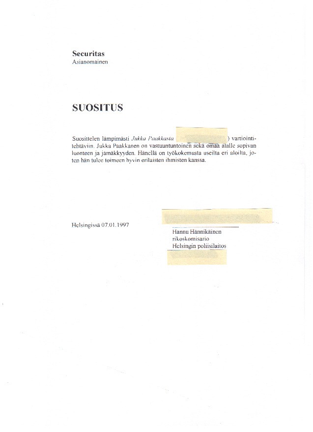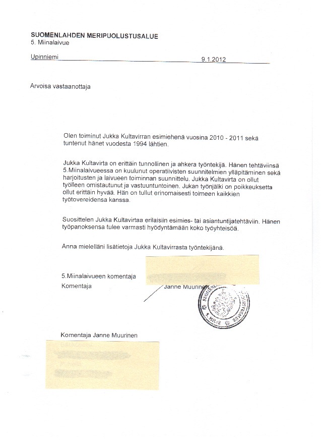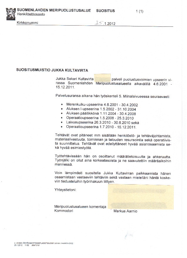Toivottavasti tiedät, että sinä olet Jumalalle arvokas. Siksi sinulle nämä hengelliset ajatukset ja pohdinnot jaan. Luotan Jumalan johdatukseen arjessa joka päivä. Saat jakaa terveiseni upseeriveljille ja -sisarille. Toivon sinulle viisautta ja rohkeutta elämässä – rakastavan Jumalan siunausta ja Jeesuksen Kristuksen rauhaa. Kaikilla meillä on oma paikkamme – myös työelämässä. Mikäli koet, että tuttavapiirissäsi saattaisi olla minulle potentiaalinen työnantaja tai kontakti, jonka kautta minulle avautuisi uusi ansiotyömahdollisuus, pyydän välittämään oheen liittämäni CV:n tällaiselle taholle tiedoksi. Kiitos työnhakuani edistäville etukäteen. Suoruuteni tunnette ja tuloksellisen työmoraalini – elämänkatsomukseni on teille selvä. Tosiasia on, että avoimista työpaikoista vain 20% tulee julkiseen hakuun ja 80% työpaikoista täytetään muiden kontaktien kautta. Olen saanut entisiltä esimiehiltäni hyvät suositukset, joten teilläkään ei liene kynnystä suositella kaltaistani tekijää tuttavapiirissänne edelleen. Iloa ja valoa.
